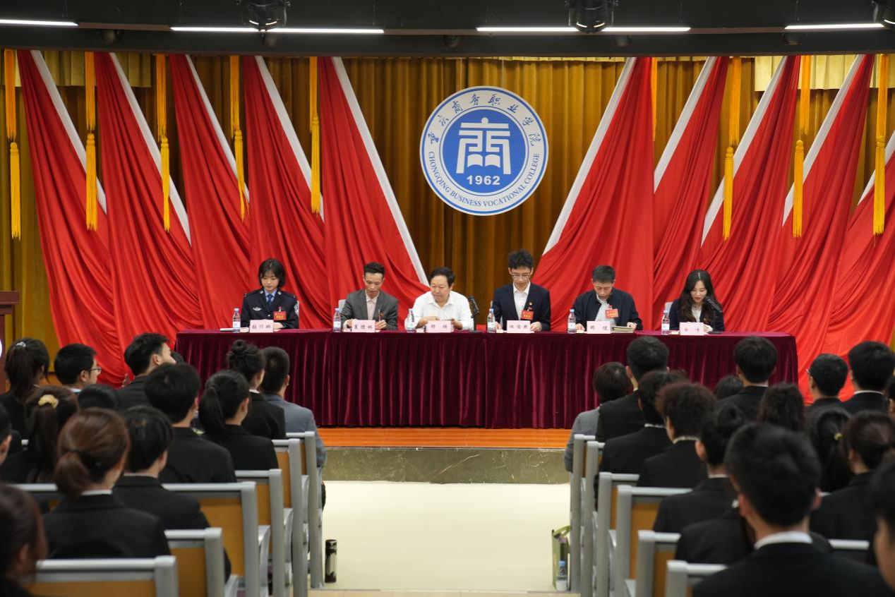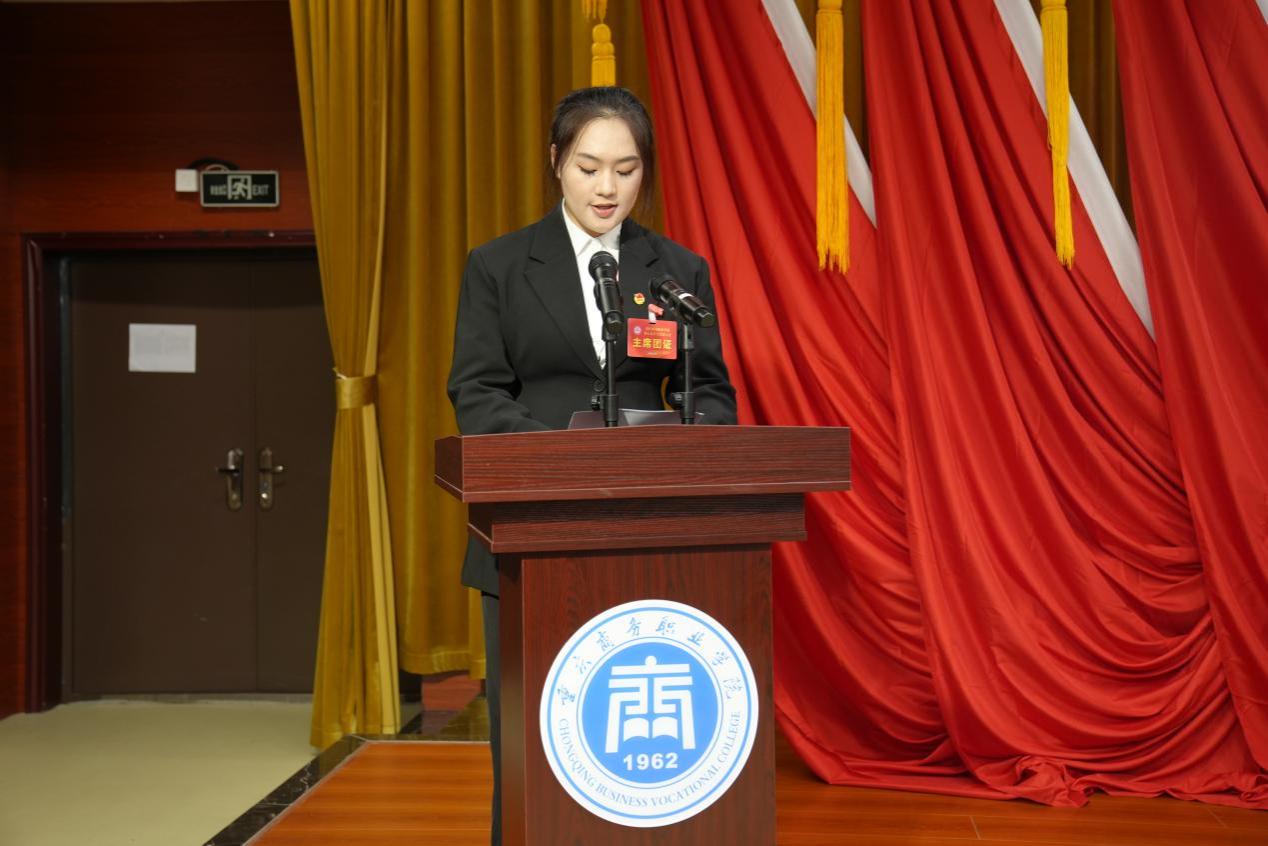 大会在庄严神圣的国歌声中开启,重庆市学联驻会执行主席池浩然宣读了《重庆市学生联合会关于同意召开重庆商务职业学院第七次学生代表大会的批复》。重庆警察学院主席团张祎琳作为兄弟高校代表致辞。第十五届学生会主席团成员李汶桦同学向大会作工作报告。