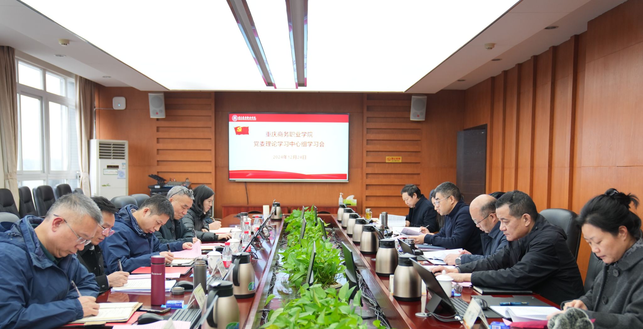 【文/图 党委宣传部】12月24日,学校党委理论学习中心组召开集体学习会议,深入学习领会习近平文化思想、中央经济工作会议精神等。学校党委委员、党委职能部门、马克思主义学院负责人参加会议。党委书记江涛主持会议并讲话。