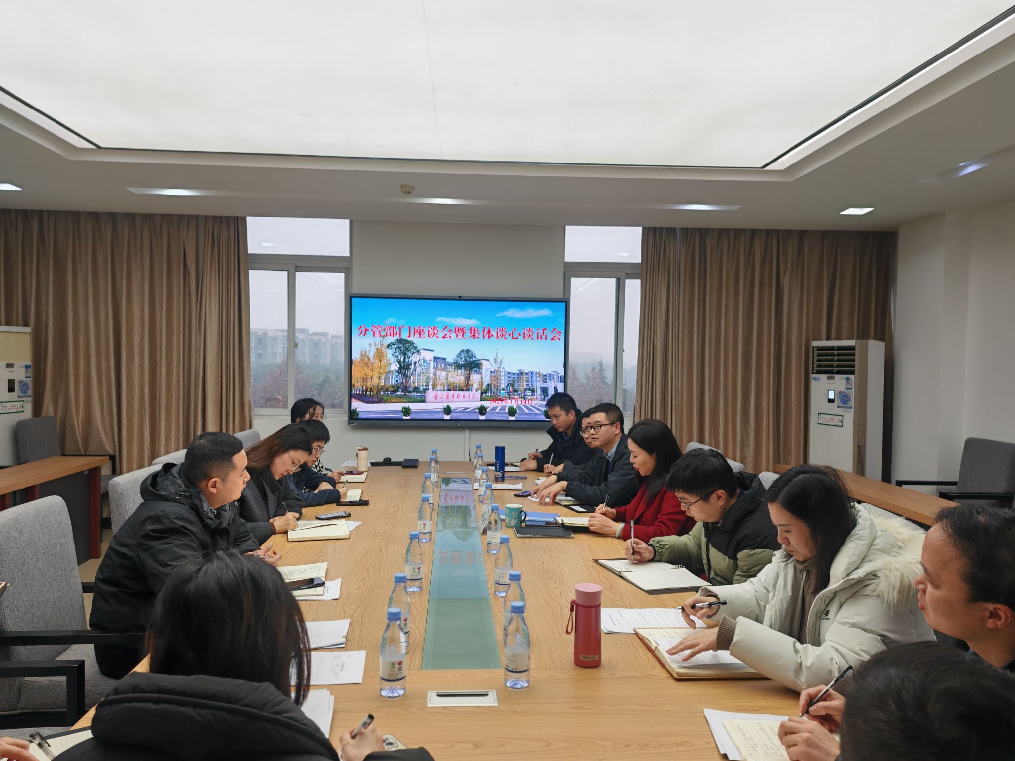 【文/图  党委宣传部】 1月15日,党委副书记余晓玲主持召开分管部门座谈会暨集体谈心谈话会,党政办公室、党委组织部(人事处)、党委宣传部(党委统战部)、对外合作交流中心、工会(妇联)全体处科级干部参会。参会人员围绕办学能力高水平、产教融合高质量建设目标,聚焦党建统领事业高质量发展、建设高素质教师队伍,对2025年重点工作进行专题研究和系统谋划,并通过集体谈心谈话等方式交流意见建议。