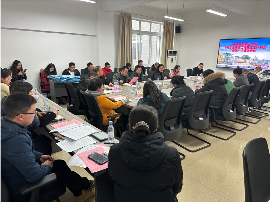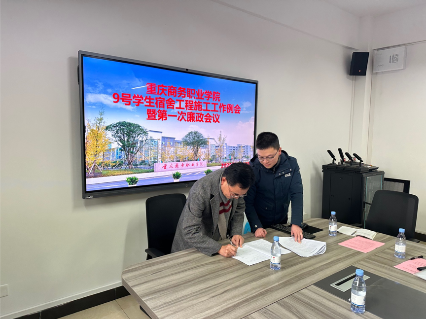 会上,基建后勤处9号学生宿舍工程项目负责人汇报了工程进展情况和寒假建设安排,纪检监察室负责人组织开展了典型违纪案例警示教育,重申了纪律规定,安排了跟进监督措施,并提出了工地廉政文化建设建议,组织签订了廉政承诺书。