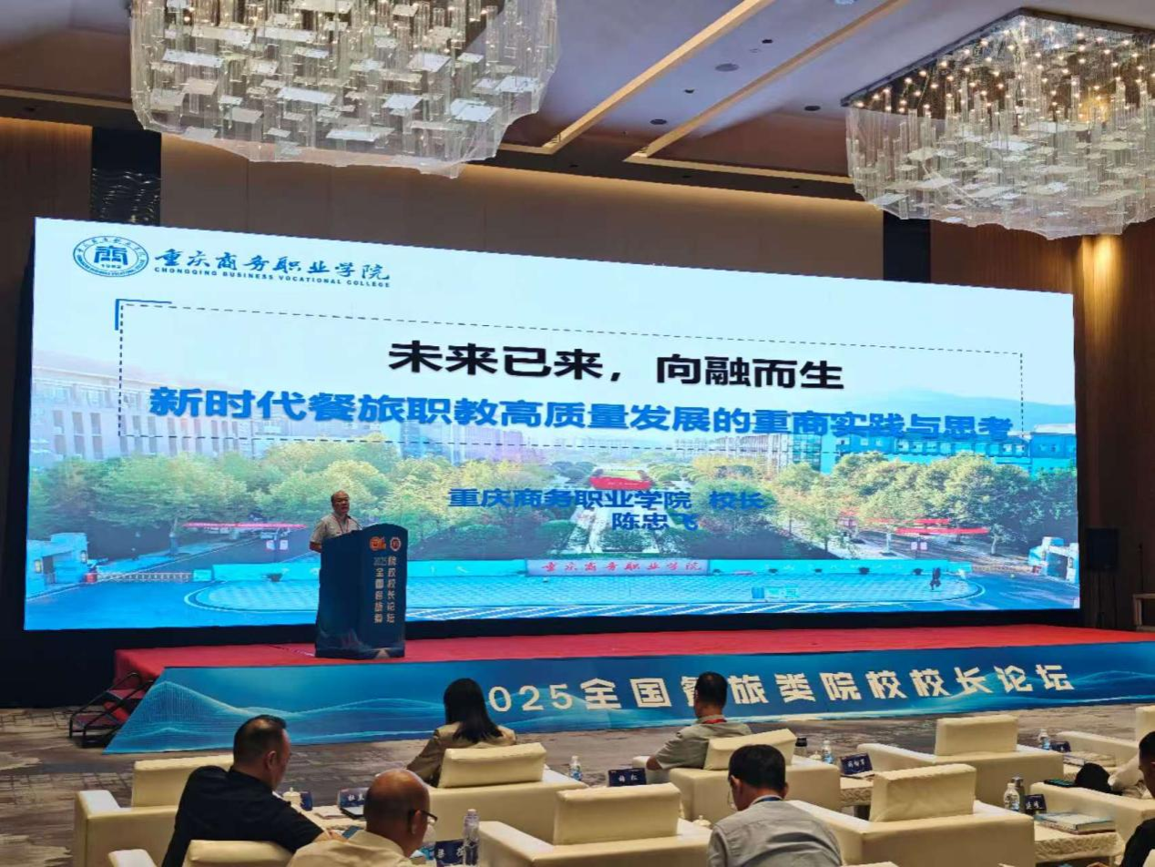 【文/图 烹饪与食品学院】9月18日至20日,中国烹饪协会、重庆旅游职业学院在重庆举办了“2025全国餐旅类院校校长论坛”。学校校长陈忠飞出席论坛,以题为“未来已来,向融而生:新时代餐旅职教高质量发展重商实践与思考”作报告。