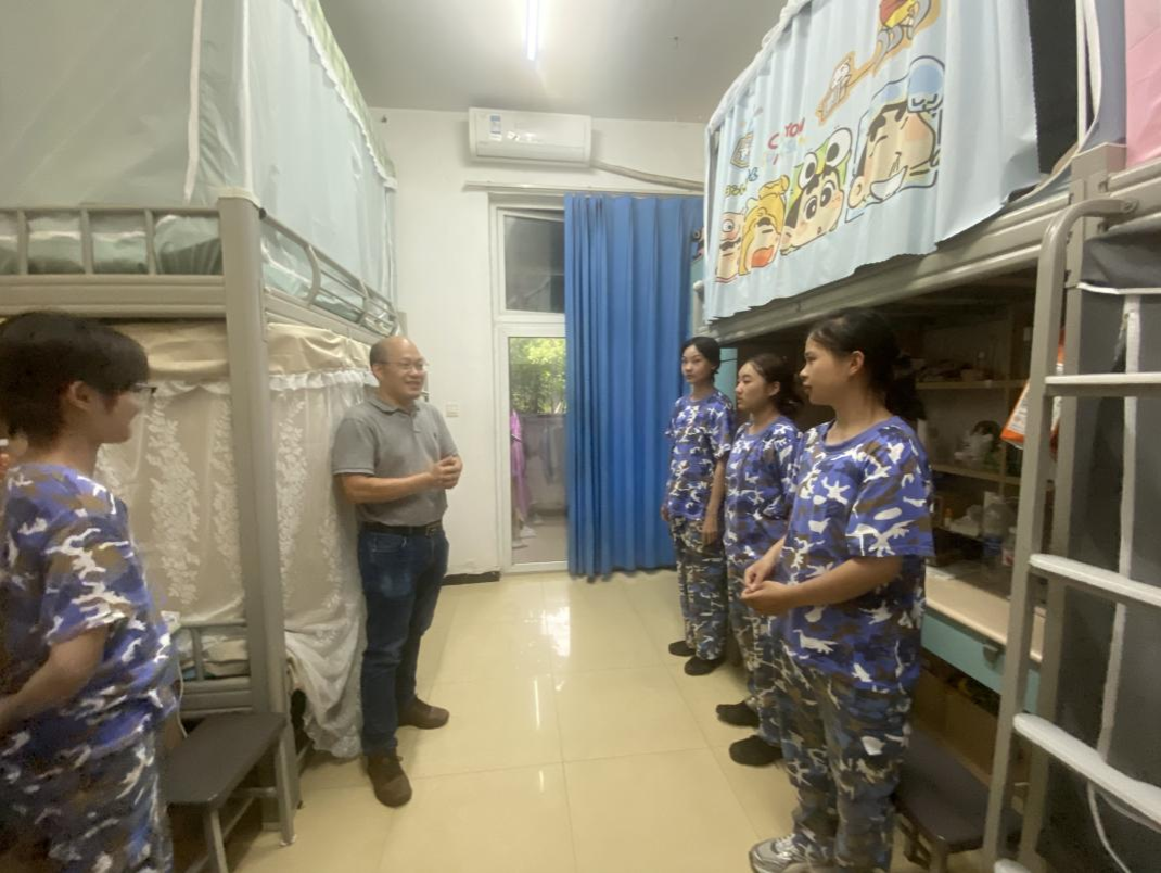 在学生宿舍,陈忠飞与新生们进行了亲切地交谈。一句句“家乡是哪里呀?来学校的路途还顺利吗?”“宿舍住得还习惯吗?饮食上有没有不适应的地方?”的暖心问候,瞬间打消了新生们的拘谨,让宿舍里充满欢声笑语。他细致询问了新生军训进展、住宿环境体验等实际情况,耐心倾听同学们初入校园的感受、遇到的困难,并一一给予回应和解答。他还结合大学生成长发展规律,鼓励同学们提前做好职业规划和学业规划,明确努力方向,合理安排时间,积极参与学科竞赛、社会实践、科研创新等活动,不断提升综合素质。