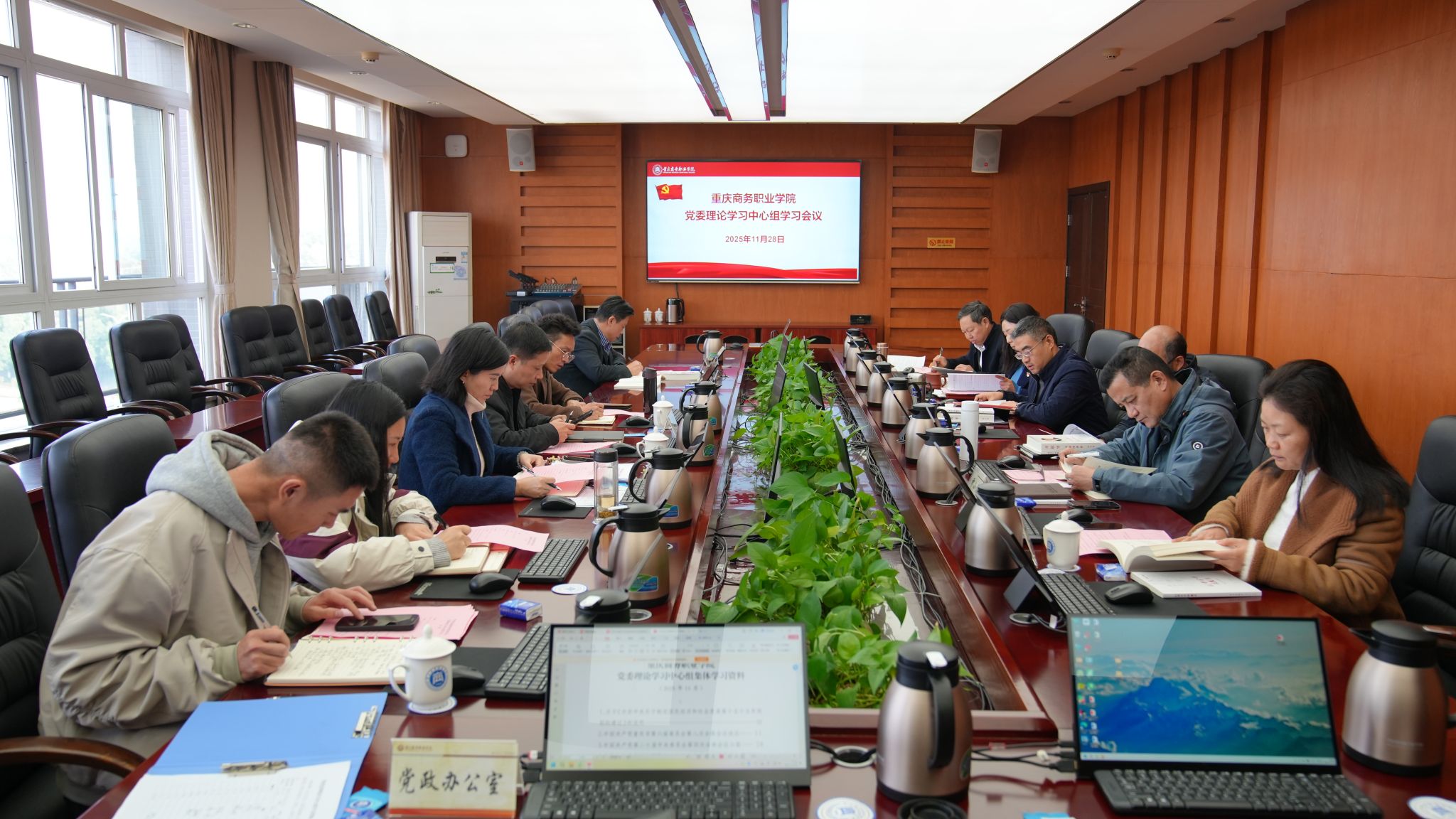 【文/图 党委宣传部】11月28日,学校在第六会议室召开党委理论学习中心组集体学习会议,深入学习贯彻党的二十届四中全会精神和重庆市委六届八次全会精神,进一步深刻领会全会精神实质、丰富内涵和实践要求,确保全会精神在全校落地生根、开花结果。全体在家校领导、党委部门负责人和马克思主义学院负责人参加会议。党委书记江涛主持会议并讲话。