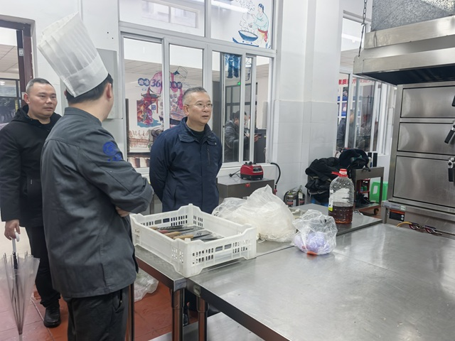 校园基建与重点区域安全检查组由党委副书记、校长陈忠飞,副校长舒鸿带队,重点检查人车分流建设项目现场安全管理、施工进度与防护情况,9号楼工地施工规范、用电及消防设备,以及食堂燃气管道、消防设施与操作间安全,要求相关单位压实安全责任,加强现场管理,确保后勤区域安全。