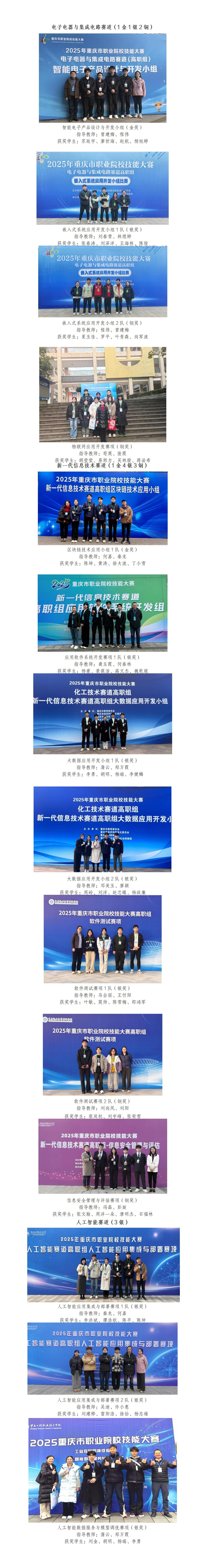 学校人工智能学院在2025年重庆市职业院校技能大赛斩获2金8银5铜
