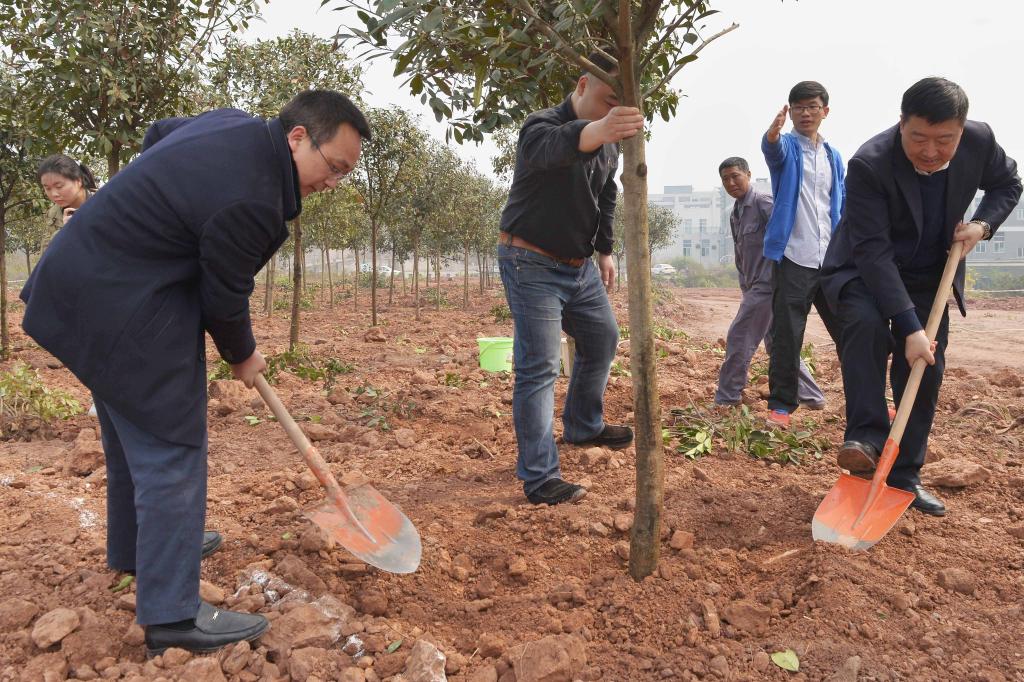 【文/周勇成】又是一年春光好,植树造林正当时。3月13日上午,学校在学生公寓D栋背面至北山公园一侧绿化带开展义务植树活动。校领导及师生代表近300人参加。