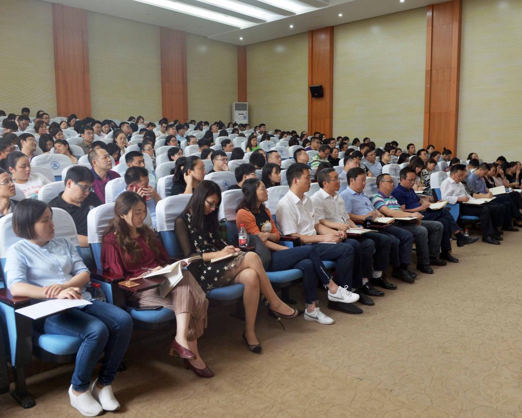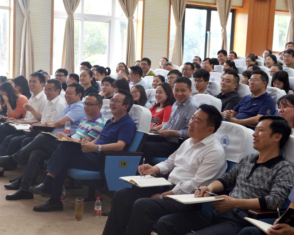 【文/谭吾毅 图/齐鲜】为深入学习贯彻习近平新时代中国特色社会主义思想和党的十九大精神,落实优质校“大党建”“大思政”建设要求,5月30日下午,学校举办“不忘初心、牢记使命”主题教育系列讲座,中国国史研究会理事、重庆市委党校著名党史研究专家、国家级重点学术期刊《重庆行政》编辑部主任张新华教授应邀来到学校,作了第一场专题讲座。党委书记谭勇,院长冉光学,副院长丁谦、张荣、舒鸿,副科级以上干部及师生党员260余人聆听讲座。