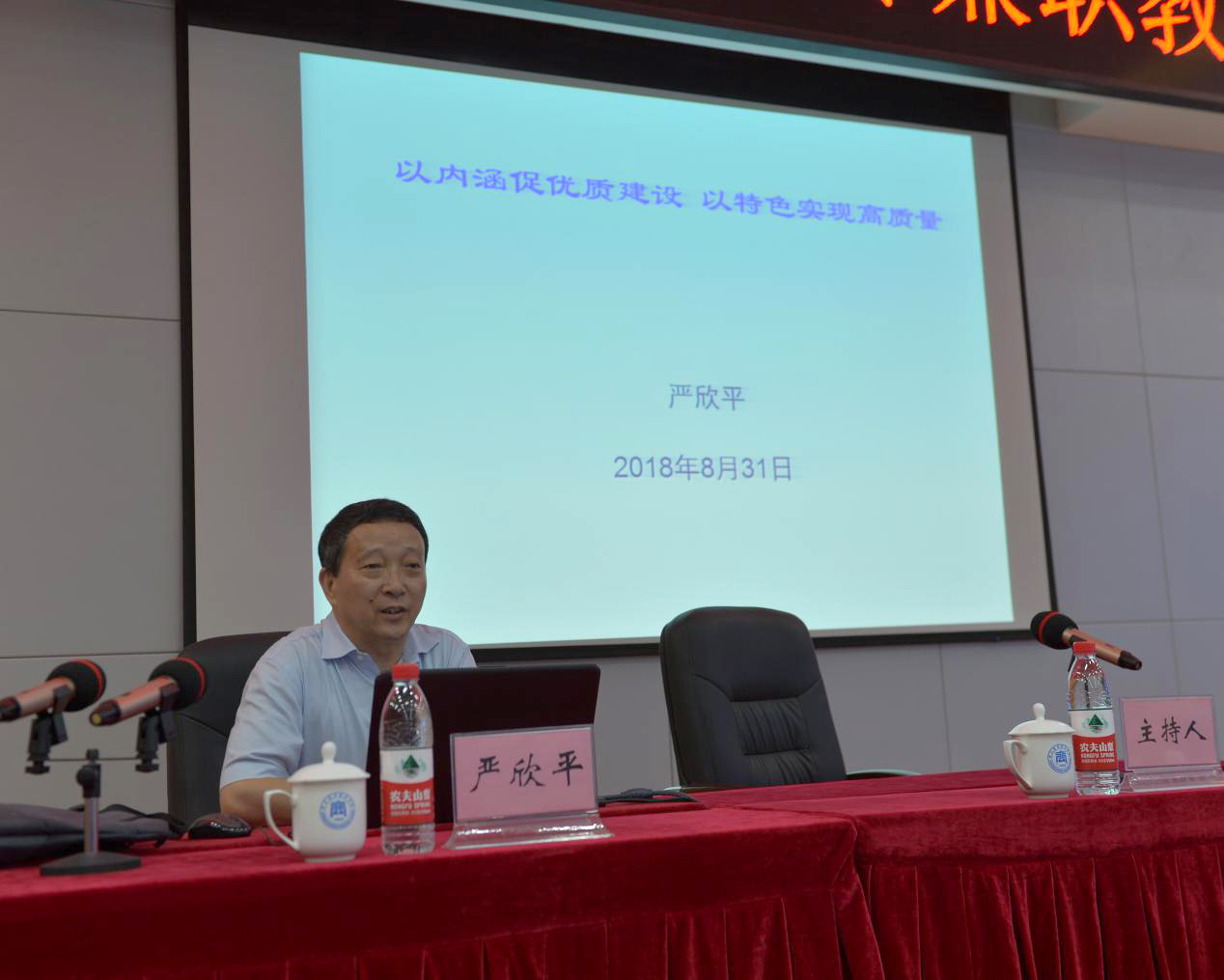 优质校指导专家严欣平教授作了题为“内涵促优质建设,以特色实现高质量”的报告,主要从文件解读、聚焦内涵抓优质校建设、铸就特色实现高质量发展三个方面指明了优质校建设中需要注意的问题和个人观点,为我校优质高职院校建设的下一步工作指明了方向,对未来加快优质高校建设进程具有重要的指导意义。
