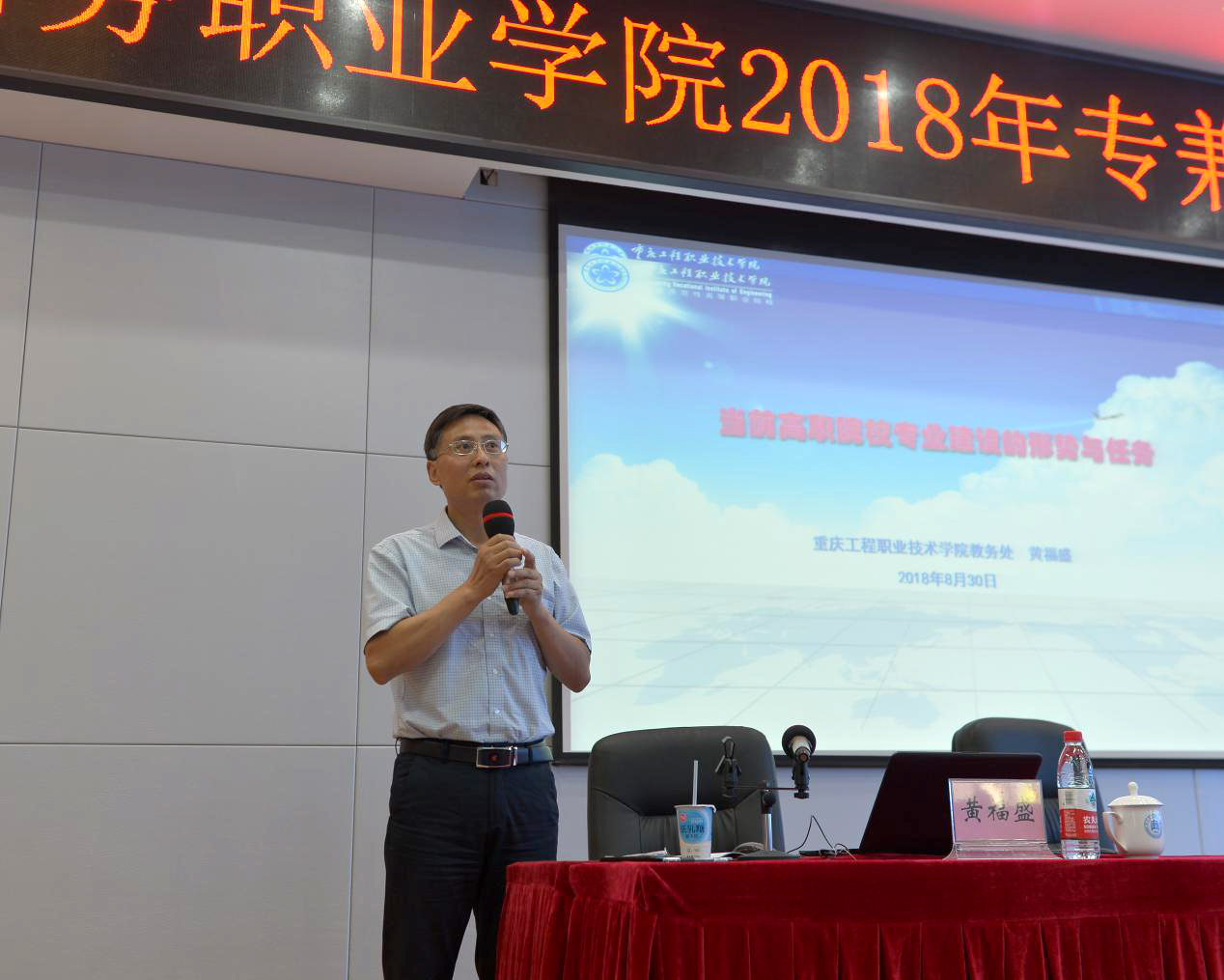 重庆工程职业学院黄福盛教授解读了“当前高职院校专业建设的形势与任务”,主要从专业建设的外部环境、专业建设的内涵要求、专业建设的诊改思路三个方面做了剖析,对我校未来专业建设的诊改具有一定的指导作用。