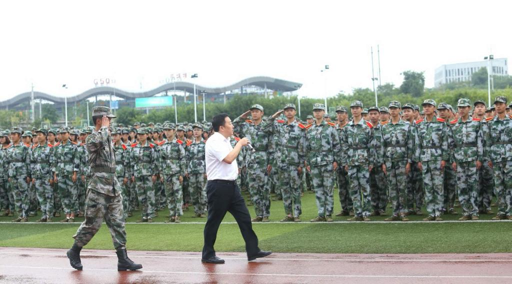 党委书记谭勇作了军训总结,并为全校新生献上了精彩的“开学第一课”。他充分肯定了2018年新生军训成果,并代表学校党政向来自陆军工程大学通信士官学校的教官和参加军训工作的老师表示崇高敬意和衷心感谢,向受到表彰的先进集体和个人表示热烈祝贺。他指出,15天的军训,同学们锤炼出了刚毅勇敢的品格,塑造了团结协作的观念,增强了勇往直前的斗志。谭勇对同学们提出了四点希望:要胸怀梦想,志存高远,自觉将青春汇入新时代,融入中国梦,在实现中华民族伟大复兴中国梦的实践中留下精彩的青春故事;要握技强能,提高本领,要脚踏实地,做到专业与通识、知识与技能并重,努力成为“善学有敬、强技砺能”的高素质技术技能型人才;要立德修身,勤于自省,要结合校训精神,修好团队之德、社会公德、个人私德,做一个有大爱大德大情怀的人;要强身健体,打牢基础,养成良好的作风和健康的生活方式,加强锻炼,提升素质,做一个有协作精神、意志坚定、勇往直前的人。