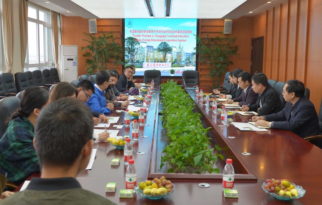 【文/徐林 图/齐鲜 吴佩芸】10月15日,重庆职业教育中外合作办学洽谈会考察团来校参观交流。副院长张荣及相关部门负责人陪同。