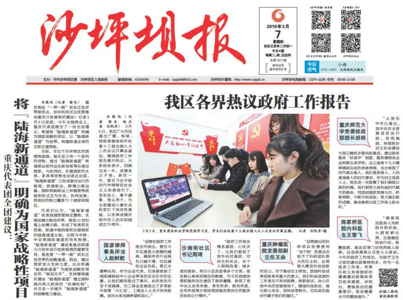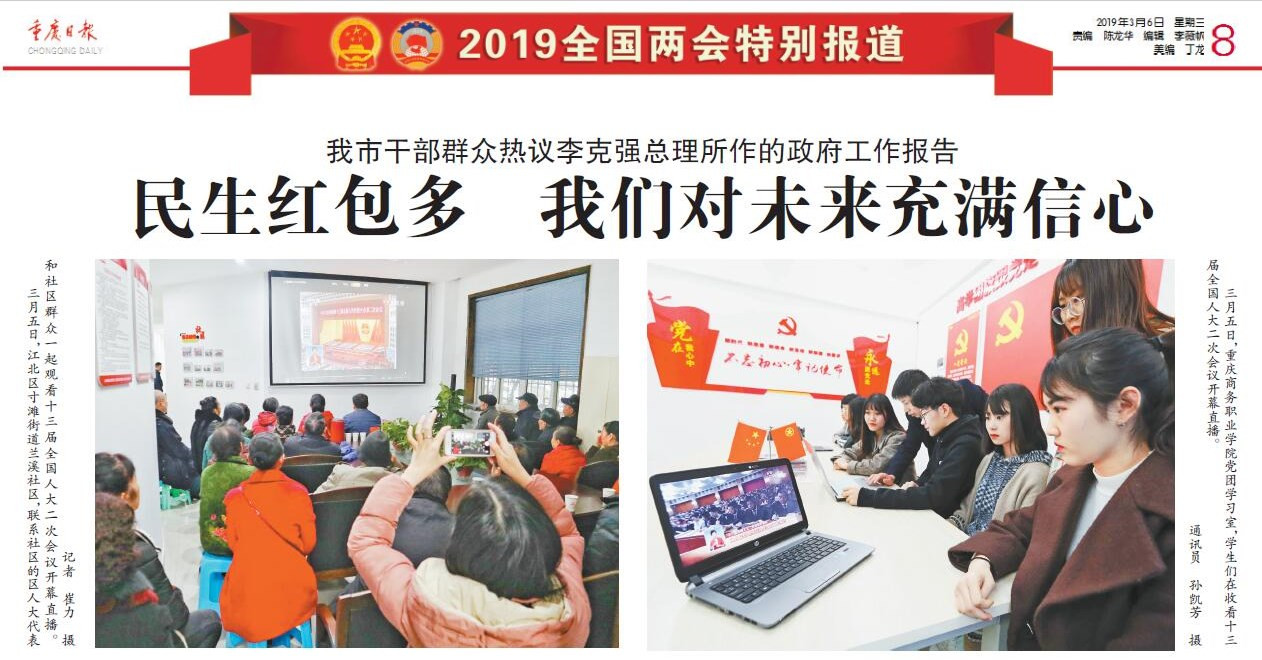 连日来,学校学生利用学习之余收听收看两会实况,认真学习大会精神。