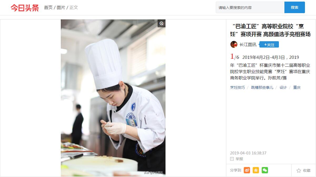 “巴渝工匠”杯重庆市第十二届高职院校学生职业技能竞赛“烹饪”赛项,在重庆商务职业学院拉开序幕,来自重庆市的七支队伍大显身手,烹饪出一道道美味而又赏心悦目的佳肴,各大媒体纷纷报道。