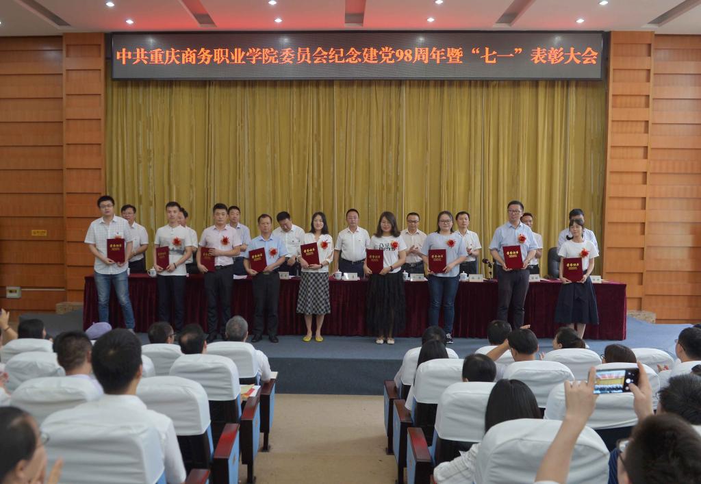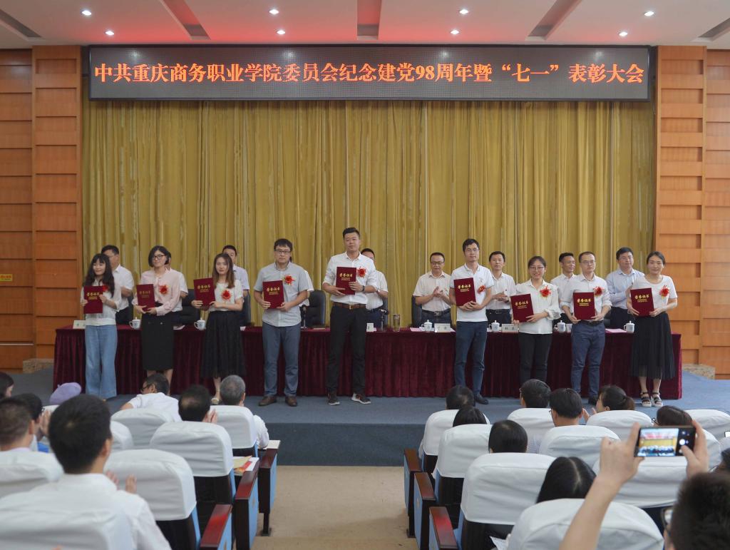 大会在雄壮的国歌声中拉开序幕。副院长张荣宣读了《中共重庆商务职业学院委员会关于表彰纪念建党98周年先进基层党组织、优秀共产党员、优秀党务工作者的决定》,全校6个先进基层党组织、43名优秀共产党员和12名优秀党务工作者受到表彰。