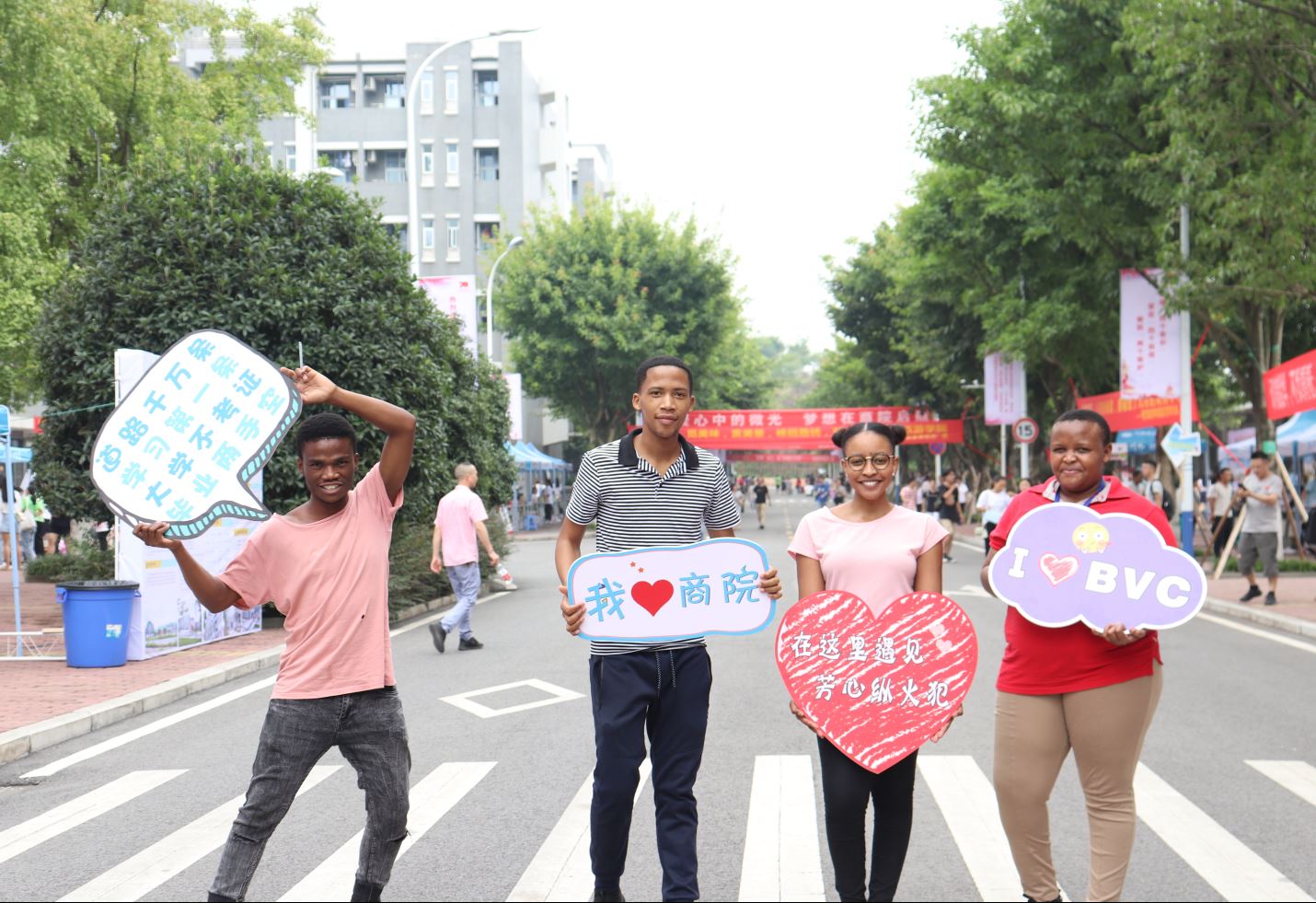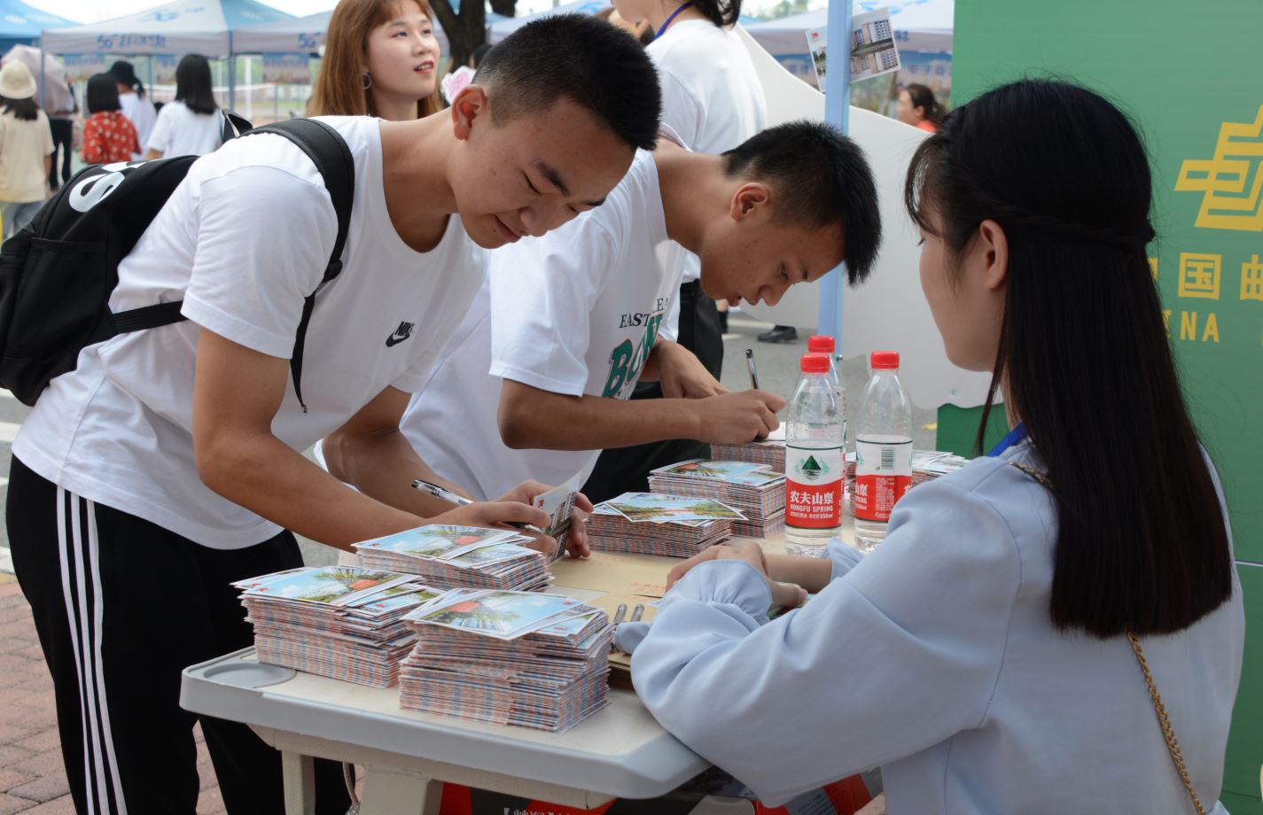 各部门及院系都使出了浑身解数,积极发挥创意,以最高涨的热情和最细致的准备,为新生及家长提供最热情的服务,引导学生快速融入大学生活。党委宣传部为新生准备了精美的明信片,新同学将给母校恩师、父母和三年后自己的寄语写在明信片上,封装后放进时光邮筒,在引导学生感恩母校、感恩父母的同时,帮助新生尽快驶入大学生活快车道;餐饮旅游学院为新生提供了自制的冰粉和饼干,用温暖和关爱迎接新生,向新生展示着了奇妙的美食世界;南非留学生参与到商贸管理系的迎新工作中,成为迎新现场一道别样的风景线。