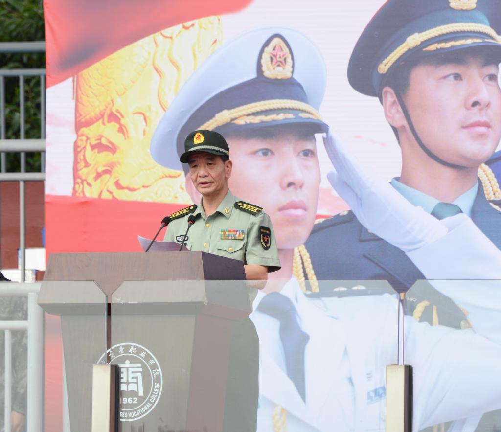 冉光学作军训工作动员讲话。他指出,商院是一所独具特色和魅力的学校,商院的魅力来自于优美的校园环境,来自于优良的教学质量,来自于一大批“四有”好老师。他对新生提出了三点希望:要树立远大理想,存续报国之志。志存高远,树立报效祖国的宏伟志向。要关注社会发展,践行青年作为。保持初生牛犊不怕虎,越是艰险越往前的斗争精神,勇立时代潮头,争做时代先锋。要自觉立志商路,注重点滴积累。践行“商行天下,学润德才”的校训,在商言商,乐观自信。