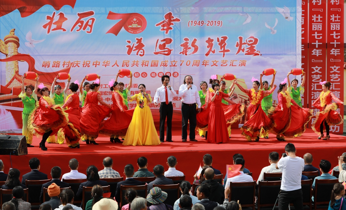 中国有梦,筑梦中国,演出在老年大学一曲歌伴舞《共筑中国梦》中拉开序幕,顷刻赢得满堂彩,歌曲表达了改革开放以来,在党中央坚强的领导下,祖国实现了一个又一个伟大的梦想,充满了对祖国美好的祝愿。曲尺乡政府带来的诗歌朗诵《歌唱祖国》铿锵有力,感情真挚,讴歌了祖国的繁荣昌盛。哨路村两委与驻村工作队带来的合唱《团结就是力量》歌声嘹亮,激人奋进,表达了哨路人民永远跟党走的信念。一首气势恢宏的独唱《红旗颂》感情丰富,展望了哨路村在五星红旗指引下迈向更加美好的明天,演出气氛热烈,高潮迭起,激发了哨路村人民用自己勤劳的双手铺就幸福之路,筑就幸福家园的决心和信心。最后,整场文艺汇演在舞蹈《幸福家园》中落下帷幕。