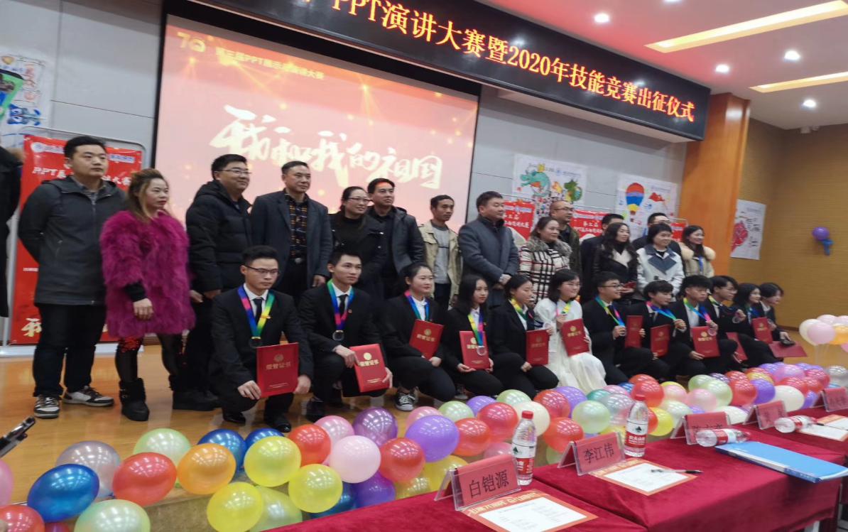 本次活动围绕“我和我的祖国”PPT展示与演讲和2020年技能大赛出征仪式两个篇章来展开。演讲过程中,6组选手从中国航天发展到攀登珠穆朗玛峰,从中国交通以及建筑古往今来的变化到中国阅兵式,用高水平、高质量的演讲回顾了新中国成立70周年的发展与变化。学生从多角度选材,以点据面,向观众和评委展示了多元的、健康向上的爱国情怀,每一组选手都极富感染力和表现力,他们慷慨激昂的演讲让台下的观众都能感受到新一代大学生的豪情壮志。