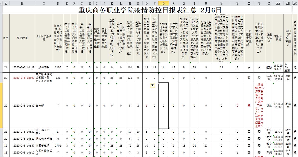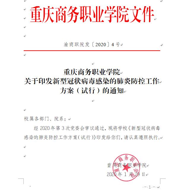 强化工作落实。加强值班值守,严格落实校领导、中层干部、关键部门值班制度;加强摸底排查,学校于1月25日-26日对从疫源地返校师生进行了摸排,1月27日起实施疫情“日报告”“零报告”制度,建立了“春节期间师生出行”“湖北返渝师生情况”“春节期间到过湖北(含武汉)或接触武汉返乡人员跟踪摸排”“校园重点区域消杀”“门岗进出测温登记”等台账;加强留学生管理,把集中上课调整为分散线上跨境电商实践教学,为留学生配备口罩、洗手液,留学生情绪稳定;加强学生顶岗实习管理,2017级3099名顶岗实习学生已按市教委要求全部安排到位;加强物资保障,设置留置观察室,正在多方努力落实口罩、消毒液、防护服、额温枪等防疫物资采购。