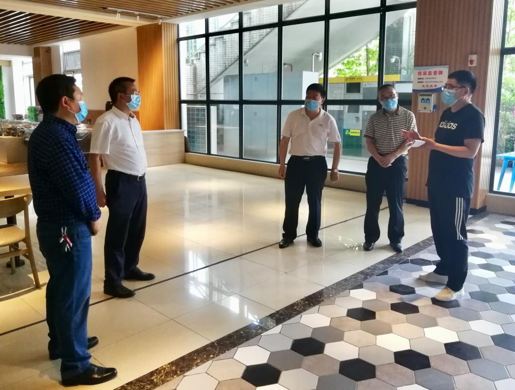莫龙飞一行实地检查了学校门岗、学生公寓、隔离观察室、学生食堂等区域的疫情防控情况,详细了解了学生健康管理期间生活服务及开学后学生用餐等工作准备情况。