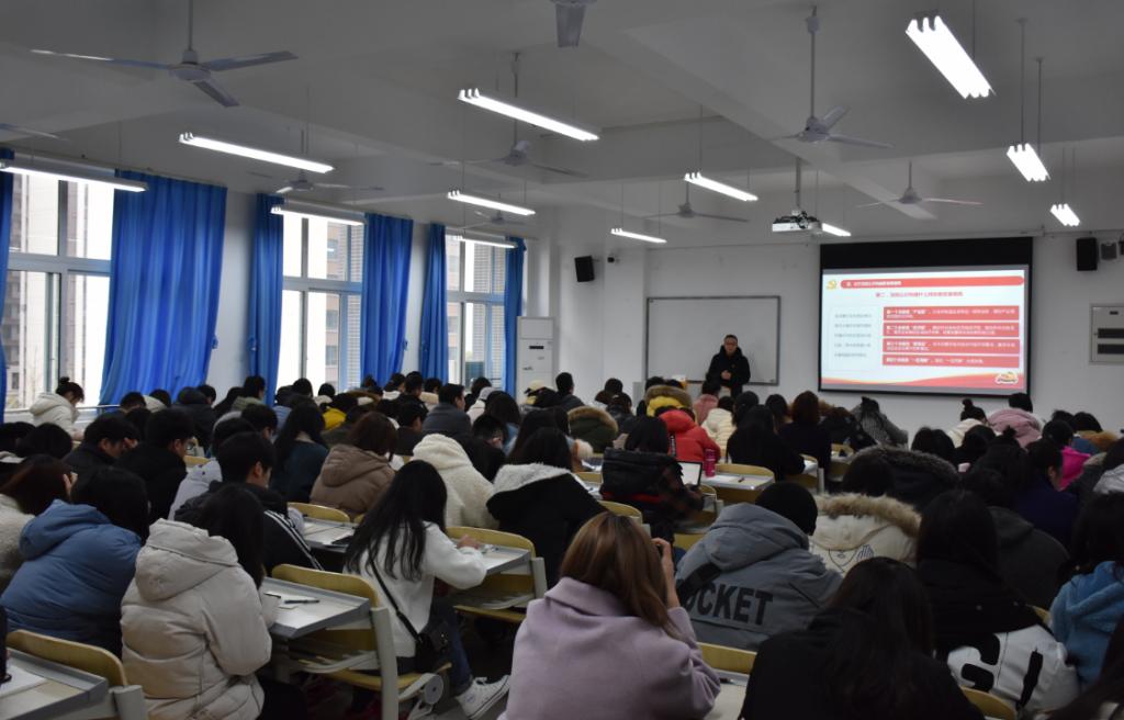 【文/图 财经管理学院】2020年12月9日,宣讲团副团长、副院长丁谦在2405教室为财经管理学院全体教职工以及学生代表共120余人进行了党的十九届五中全会精神专题宣讲,宣讲会由党总支书记黄琳娜主持。