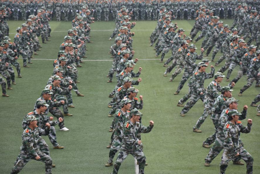 仪式在激昂的国歌声中拉开帷幕,国旗护卫队的旗手们迈着坚定整齐的步伐进入汇报展示现场。在庄严的升国旗仪式后,分列式表演开始,方阵队员们身穿军绿色训练服,坚定的眼神、刚劲的步伐、昂扬的姿态彰显着商院学子良好的精神风貌。随后,铿锵有力的军体拳、行云流水的擒敌拳、整齐划一的匕首操、青春活力的手语操等训练科目逐一进行表演,为为期15天的军训交上了一份满意的答卷。