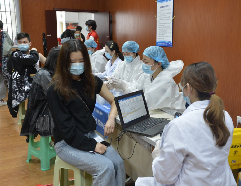 接种现场,师生们有序进行接种,从入口登记到签写知情同意书,再到注射疫苗和留观,整个过程高效便利。医护人员贴心指导、志愿者暖心服务,各项工作有条不紊、井然有序。
