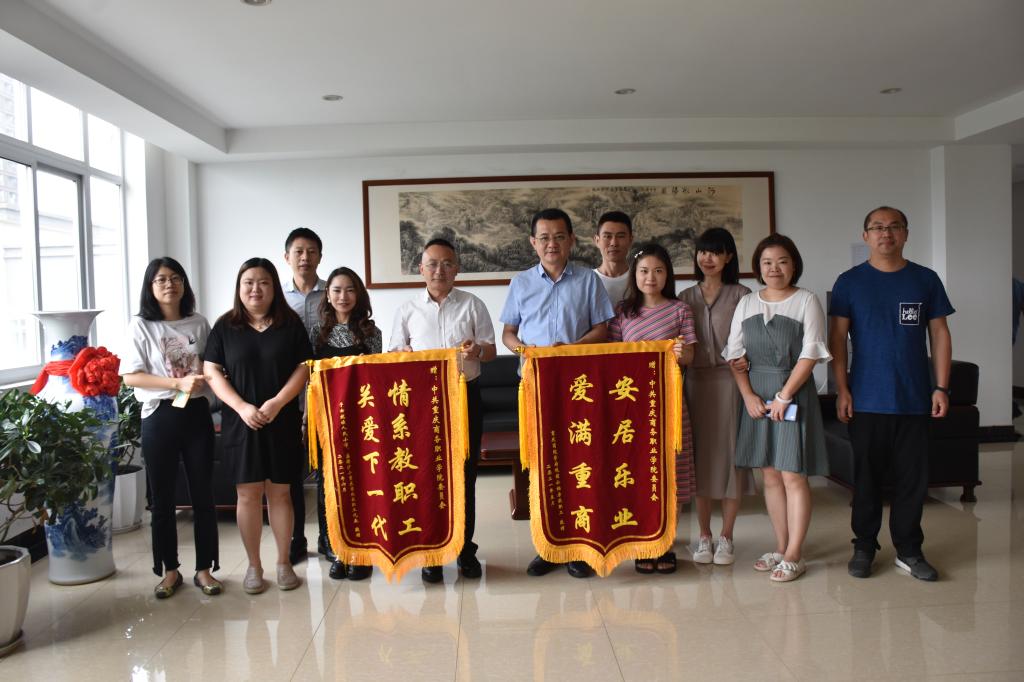 【文/工会 图/新闻中心】近日,学校唐莹教授协同子女入读小学和幼儿园的职工代表、居住学校集体公租房的职工代表向学校党委和工会献送锦旗,感谢学校党群组织对教职工的关心关怀。党委书记谭勇代表学校党委接受锦旗并作讲话,工会主席夏德林代表学校工会接受锦旗。