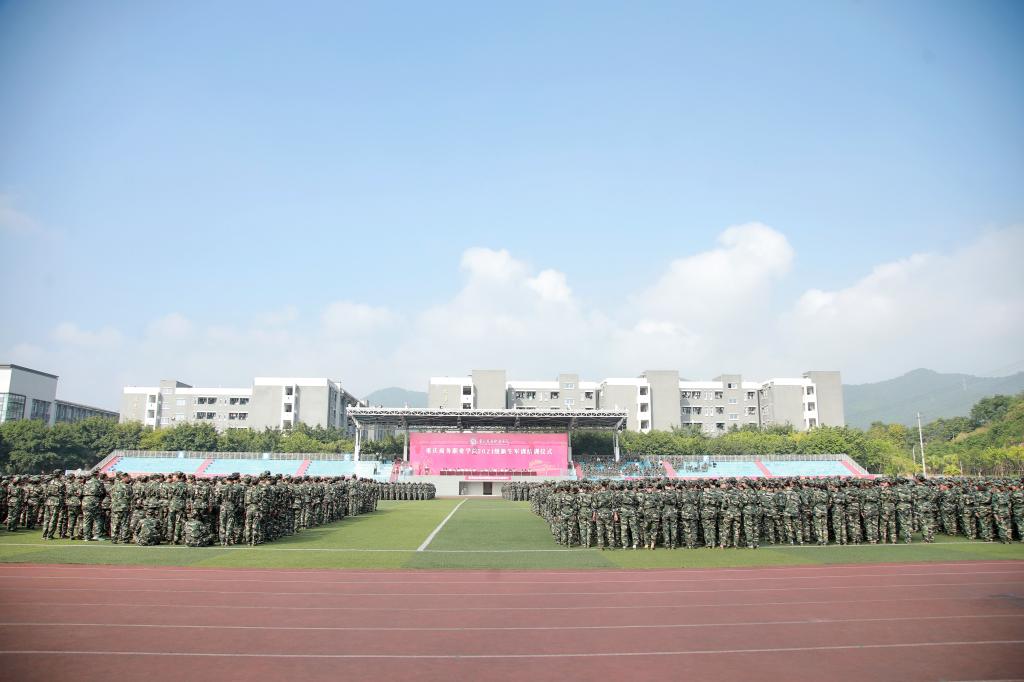 【文/图 学生工作部】9月29日上午,学校2021级学生军训结训仪式在运动场举行。重庆市沙坪坝区武装部领导、学校在家校领导、相关部门负责人和二级学院党政负责人、2021级全体学生共计4900余人参加仪式。