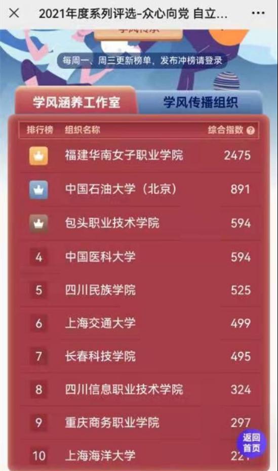 “勤学善思重行”学风建设基地在学校党委和学校各部门的大力支持下,积极传承优良学风,弘扬科学家精神,通过“风启学林”社交媒体平台,发表学风传承励志各类作品。经过项目申报与评审,以综合指数位列全国第九的成绩荣获中国科协“2021年度活跃组织”称号。