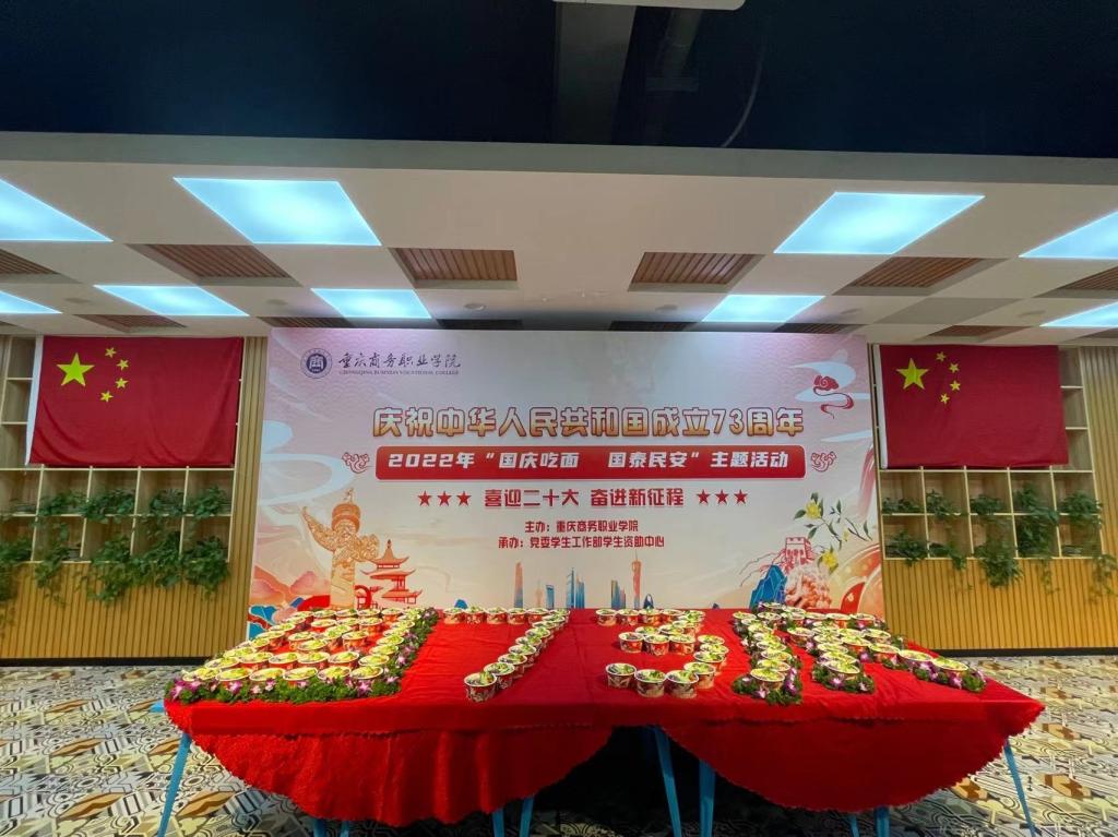 9月29日,学校开展“喜迎二十大 书写新篇章”我与国旗合影主题活动,400余名学子通过集体与国旗合影的方式喜迎国庆佳节。29日晚,学校在学生食堂开展“国庆吃面 国泰民安”主题活动,用中华特色美食向祖国献礼,庆祝祖国华诞,1000余名学子代表欢聚一堂,同享国庆面、喜迎二十大。