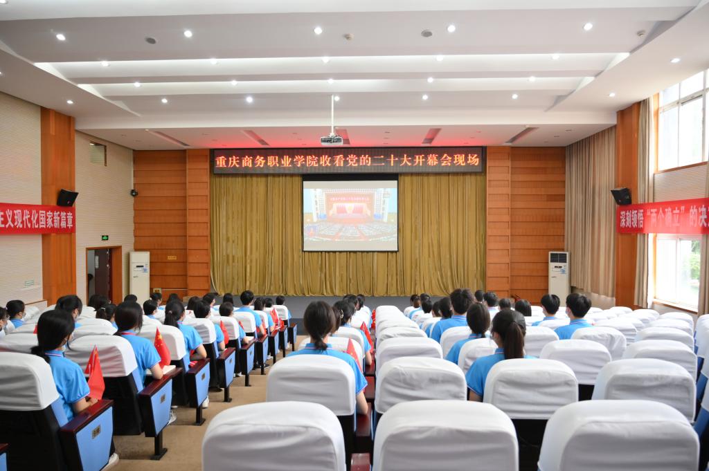 【文/图 党委宣传部】10月16日上午10时,中国共产党第二十次全国代表大会在北京人民大会堂隆重召开,大会的主题是:高举中国特色社会主义伟大旗帜,全面贯彻新时代中国特色社会主义思想,弘扬伟大建党精神,自信自强、守正创新,踔厉奋发、勇毅前行,为全面建设社会主义现代化国家、全面推进中华民族伟大复兴而团结奋斗。重庆商务职业学院组织全校15000余名师生通过广播、电视、网络等多种方式收听收看党的二十大开幕盛况,认真聆听、学习了习近平总书记代表十九届中央委员会向大会作的报告,并迅速掀起对二十大报告要点的学习讨论热潮。