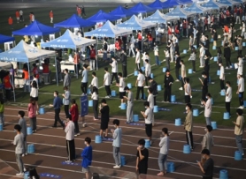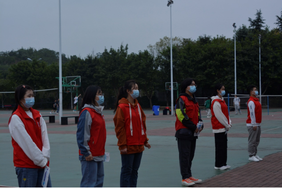 11月1日—18日志愿者参与核酸检测工作达939人次。他们分为成列组、入口组、操场秩序组、出口组、拦截组几个组,在双创街分为拦截组等小组,共同发挥作用维持核酸检测现场秩序。