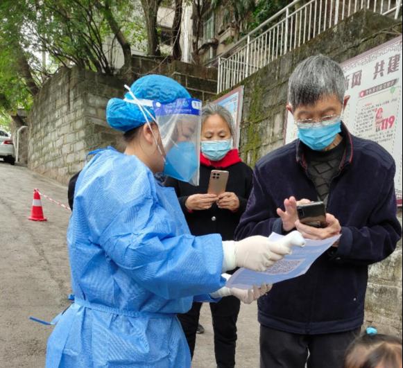 【文/图 文化旅游学院】当前,我市疫情形势严峻复杂,防控工作处于最吃劲、最紧要、最关键的时期。连日来,全市广大志愿者迅速响应疫情防控志愿者招募令,奋力投身到疫情防控攻坚战中。学校文化旅游学院2020级社区管理与服务专业1班学生王荣萍同学因近日疫情在家无法返校,第一时间到綦江区古南街道百步梯社区报道,参加志愿者服务工作,得到当地相关部门的高度认可。