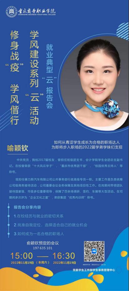 【文/图 学生工作部】为激发学生学习新动力,合理规划在校学习与生活,提升专业技能和就业创业能力,做好职业生涯发展规划,确保学风建设“不掉线”,学生工作部于近期推出“修身战疫学风偕行”学风建设系列“云”活动。