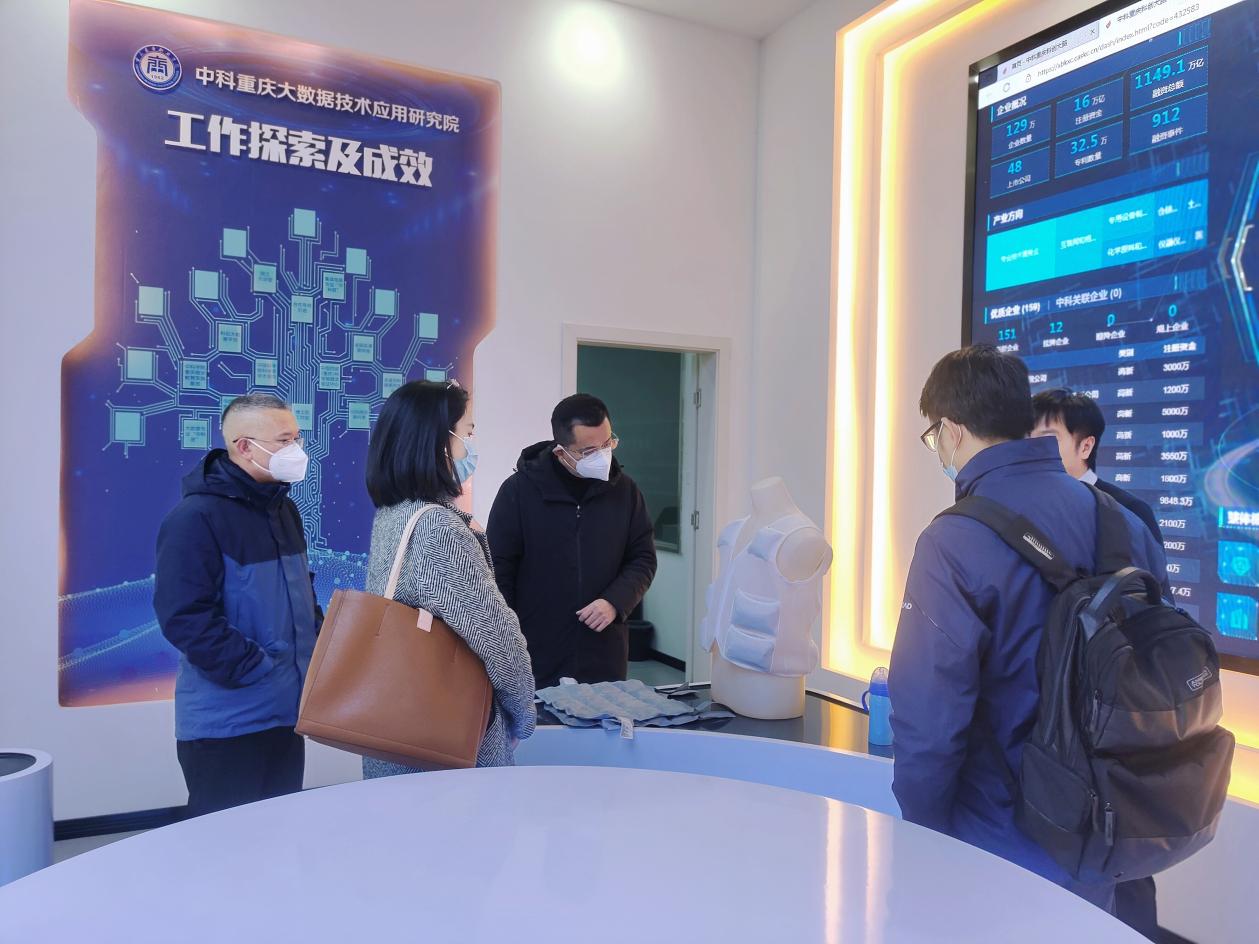 参观重点介绍了研究院与学校合作的核心五大板块:人才引进与培养中心、科技合作交流中心、科创数据服务中心、西部(重庆)科学城概念验证中心、成果转移转化中心,并讲解了展厅陈列的科技成果展品展项。西门子教育合作业务发展高级经理对学校和研究院教学与科技结合成果兴犹不浅。