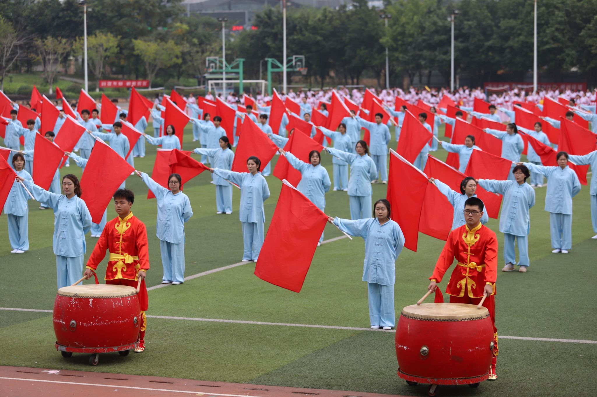 伴随激昂的运动员进行曲,国旗队、校旗队、会旗队、标语队、彩旗队、裁判队、教职工方队和运动员代表方阵各出新意、各展风采,用响亮的口号与精心设计的表演展现新时代青年的朝气蓬勃与青春活力。