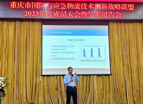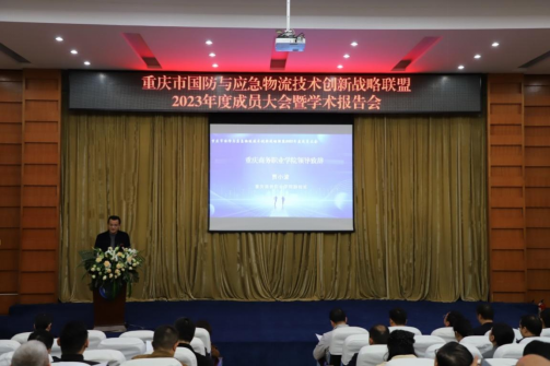近日,重庆市国防与应急物流技术创新战略联盟2023年度成员大会暨学术报告会在学校成功举行,成员单位代表及相关政府领导近100人参加了会议。学校副院长贾小波代表承办单位欢迎各位领导专家、企业嘉宾及兄弟院校的到来,希望借助联盟这个平台,深化产教融合,共谋发展,形成政企校联动,为社会培养输送高质量的应用型人才。