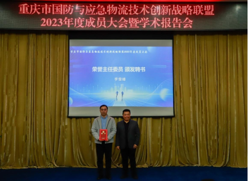 联盟专委会特别聘请教育部高等学校物流管理与工程类专业教学指导委员会办公室主任、全国物流职业教育教学指导委员会副秘书长李俊峰为荣誉主任委员,由专委会主任重庆工商大学张军教授当场向他授予聘书。