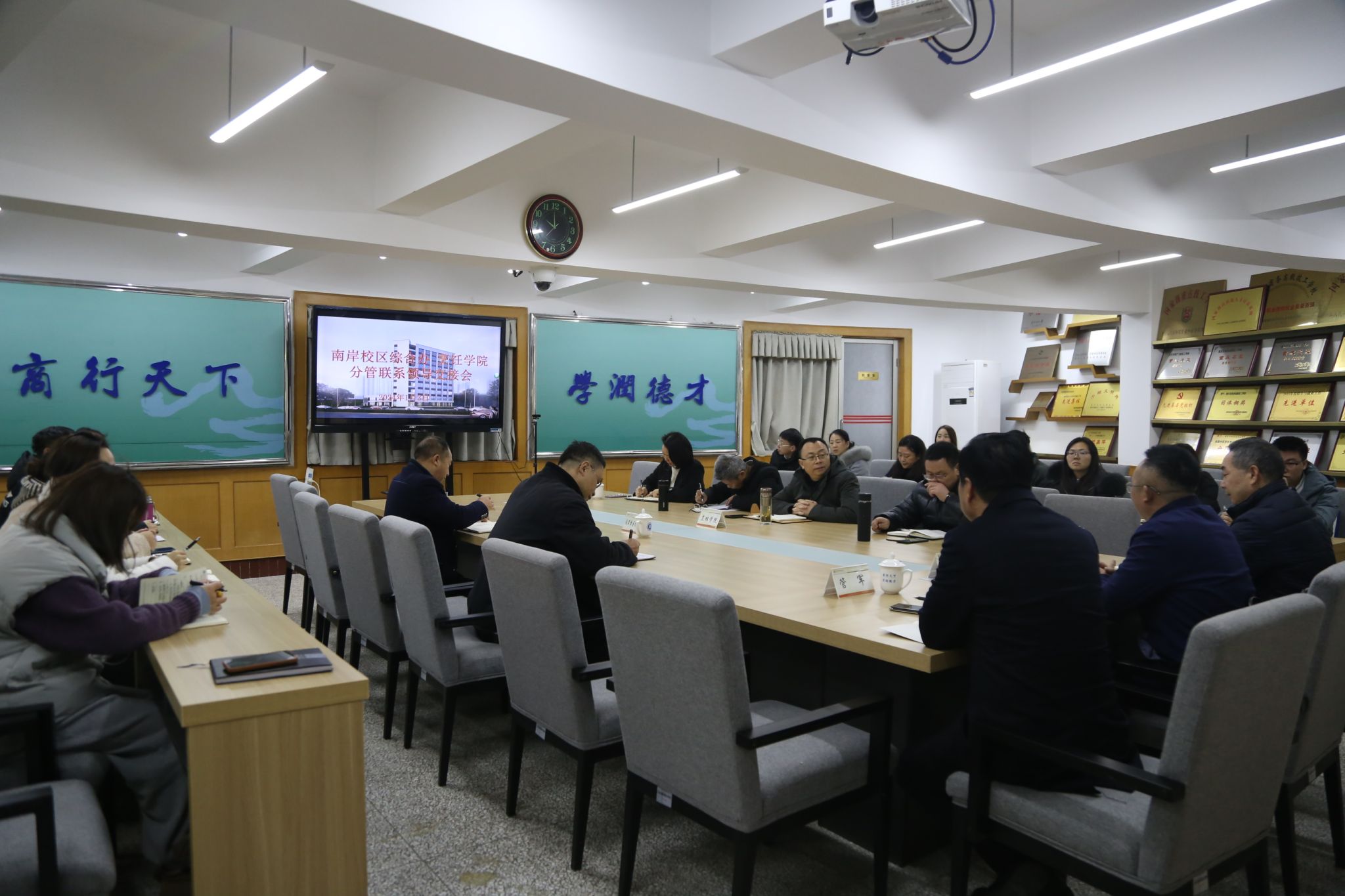【文/图 南岸校区综合办公室】1月3日上午,党委书记谭勇、副院长管军、南岸校区负责人廖明江在南岸校区召开综合办、烹饪学院分管联系领导交接座谈会。南岸校区综合办、烹饪学院全体人员参加会议。