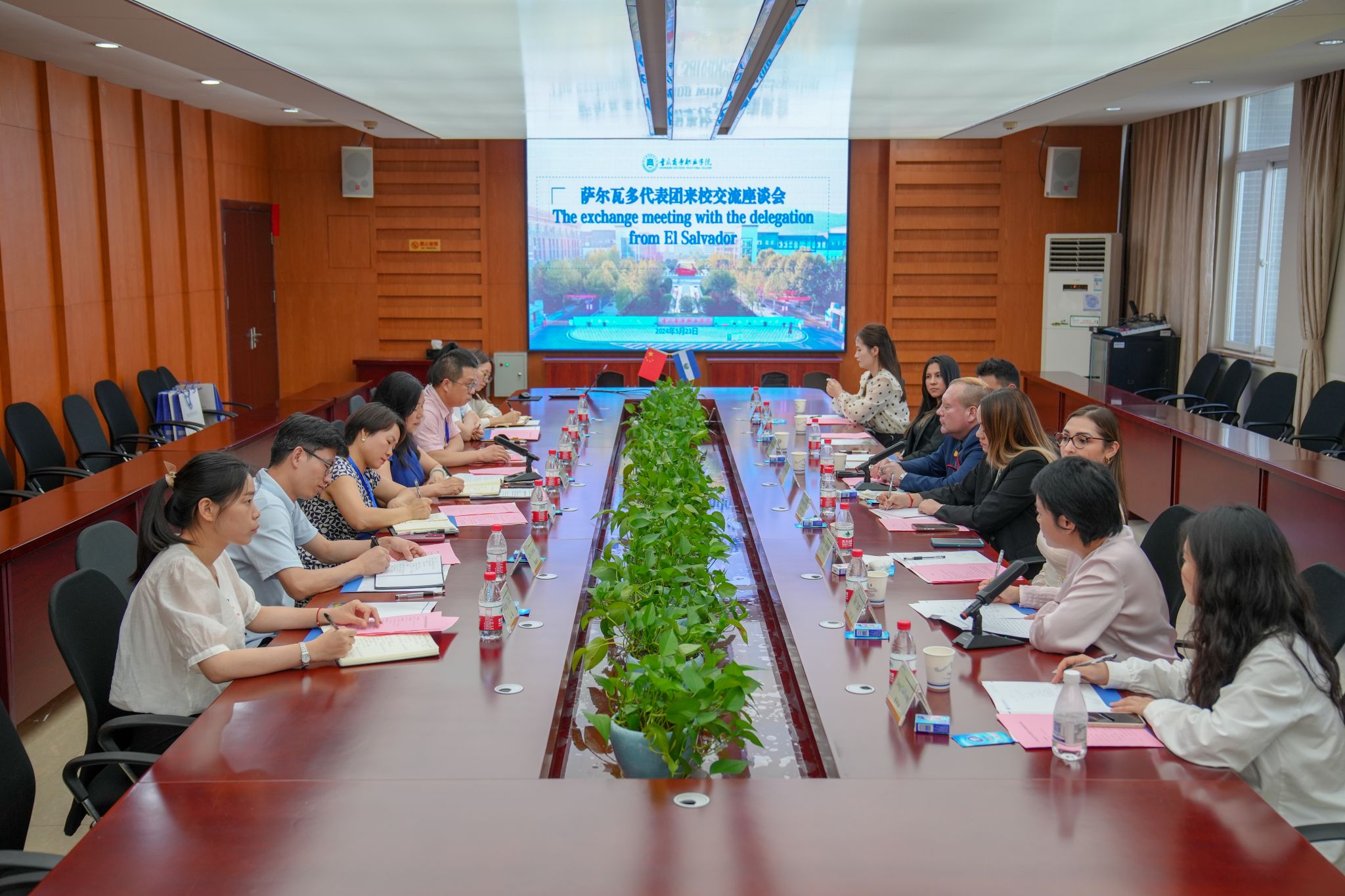 【文/对外合作交流办 图/党委宣传部 】5月23日,根据市政府外事办公室相关工作部署,萨尔瓦多驻华大使阿尔多·阿尔瓦雷斯、公使衔参赞卡罗琳娜·萨拉拉、商务参赞佩德罗·哈耶姆,圣萨尔瓦多市政府秘书长凯伦·冈萨雷斯、妇女和家庭秘书处执行副主任亚历杭德拉·里维拉一行5人来校交流。党委副书记余晓玲会见来宾,对外合作交流办公室、人工智能学院、电子商务学院、出版传媒学院及烹饪学院相关人员陪同参观和座谈。