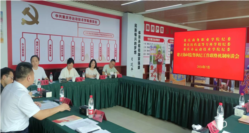 【文/图 纪检监察室】7月8日,学校纪委应邀赴重庆市运动技术学院开展调研交流,并与重庆医药高等专科学校纪委、重庆市运动技术学院纪委开展调研座谈,围绕监督工作联络协调、共建清廉学校开展了研讨交流。