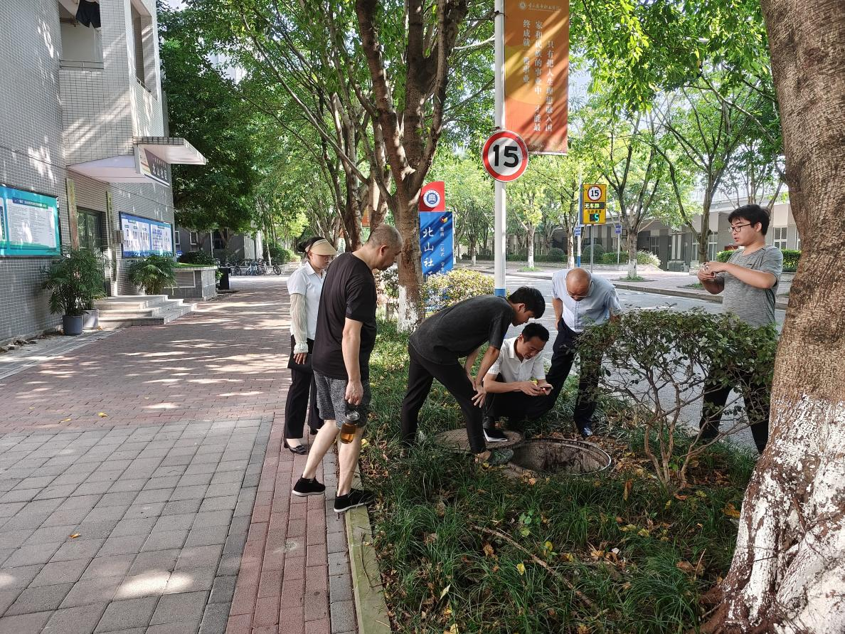 后勤处环境管理科全体人员及物业管理公司、绿化管护公司相关负责人对假期工作进行全面排查