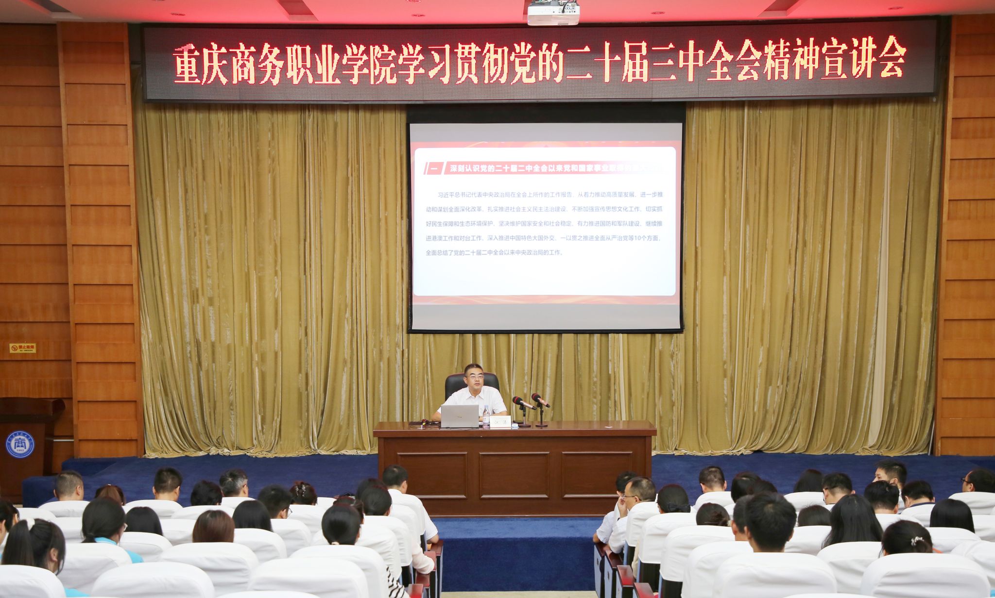 陈忠飞从全会召开的基本情况和重要意义、深入学习领会习近平总书记在全会上的重要讲话精神、全面准确理解《决定》提出的进一步全面深化改革重大举措、贯通学习习近平总书记对重庆改革工作的系列重要指示要求、全力以赴抓好全会精神在学校贯彻落实等5个方面,对全会精神进行了全面宣讲和深入阐释。并结合党和国家对教育强国的战略部署,对学校深入贯彻落实全会精神,进一步完善立德树人机制,全面加强内涵建设,创建“新双高”提出了目标要求。