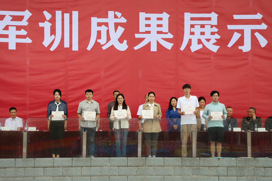 成果展示结束后,贾小波宣读了《关于表彰2024级新生军训先进集体和个人的通报》。主席台领导和嘉宾为获奖集体和个人代表颁奖。