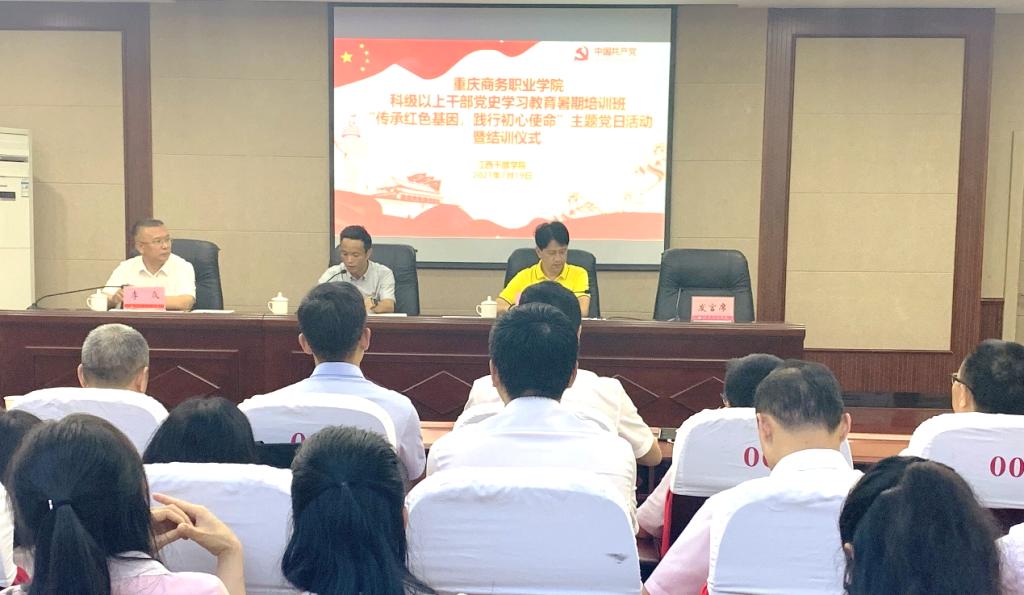 【文/图 组织人事处】为深入学习贯彻习近平总书记“七.一”重要讲话精神,推进党史学习教育走深走实。7月19日,学校组织科级以上干部60余人,在江西干部学院开展“传承红色基因,践行初心使命”主题党日活动。江西干部学院副院长黄书华,学校党委委员、宣传部(统战部)部长夏德林,学校党委委员、教务处处长李焱出席本次活动。