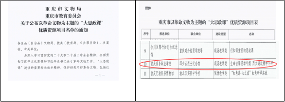 学校现场教学示范课入选2024年重庆市革命文物“大思政课”优质资源项目