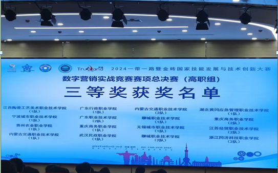 【文/图 经济贸易学院】10月19日至20日,2024年“一带一路”暨金砖国家技能发展与技术创新大赛数字营销实战竞赛赛项决赛在河南郑州圆满落幕。在与来自全国各地的127支队伍同台竞技中,由我校教师张可忻、谭娅、谭秀芬指导的2支学生队伍,荣获两项全国三等奖。