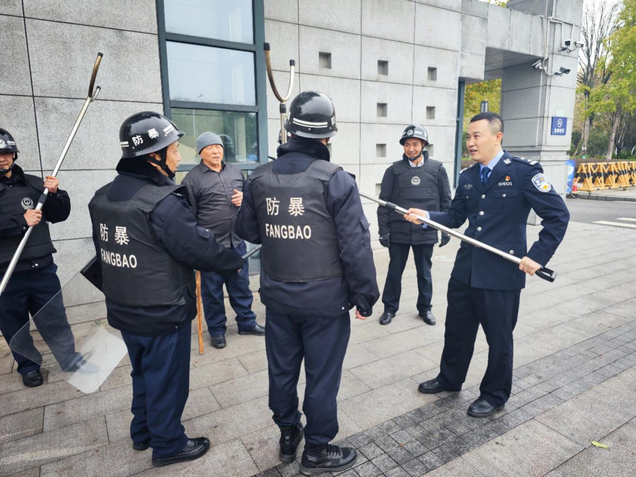警校联动,开展反恐演练。11月22日,丰文派出所民警指导学校安保队员开展反恐防暴应急演练。演练前,民警向现场工作人员就反恐防暴知识、实战经验、反恐器械使用方式等进行详细讲解。演练内容为假设在东门102岗处突然发生恐怖袭击事件,安保人员用对讲机紧急报告反恐防暴应急管理工作领导小组,立即启动应急预案和处置机制,同时拨打110报警电话。随后,到场民警联合安保队员对“暴徒”进行围困周旋,在安抚警告无效的情况下,利用“盾、棍、钢叉”防暴设施,准确出击,最终制服“暴徒”。