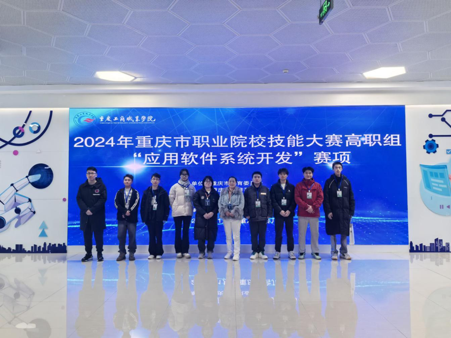 【文/图 人工智能学院】1月3日至5日,2024年重庆市职业院校技能大赛高职组电子与信息赛道应用软件系统开发赛项在重庆工商职业学院(合川校区)拉开帷幕。此赛项要求团队成员在60分钟内完成技能操作与项目汇报,着重考查专业技能的熟练性、规范性,重点彰显团队成员的创新精神以及解决生产一线实际问题的能力。全市共有53支队伍参与此次赛事。学校人工智能学院何春林、龚玉霞、郭晓惠、叶思佳4名指导教师率队参赛。